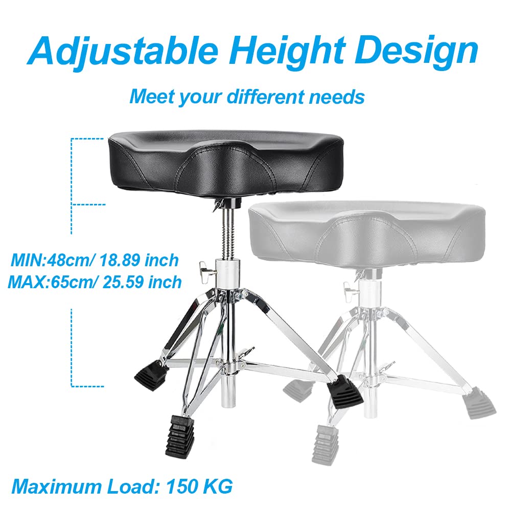 Amazon Com Vangoa Saddle Drum Throne Seat Padded Comfortable Motorcycle Style Drum Throne Chair Stool Height Adjustable Double Braced For Adults Drummers Black By Vangoa Musical Instruments